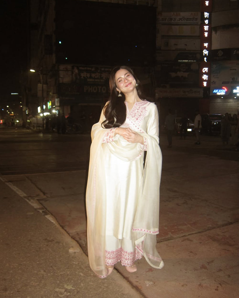 “Aviva” radiates understated sophistication and modern poise. Crafted from opulent silk in a delicate hue, the ensemble features an intricately embroidered silk shirt paired with matching culottes, creating a look that’s both graceful and contemporary. Completing the design is an embroidered cotton net dupatta that adds a touch of airy elegance — a perfect harmony of refinement and timeless charm, ideal for formal gatherings and festive occasions.