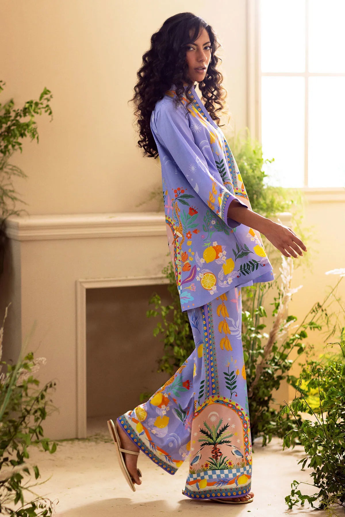 Effortlessly elegant, Loki by Annus Abrar is a modern co-ord set designed for casual sophistication. Crafted from premium crepe silk, this ensemble features playful floral and fauna prints that add a refined yet lively charm. The knee-length shirt boasts a relaxed, loose silhouette, combining comfort with a polished appearance.