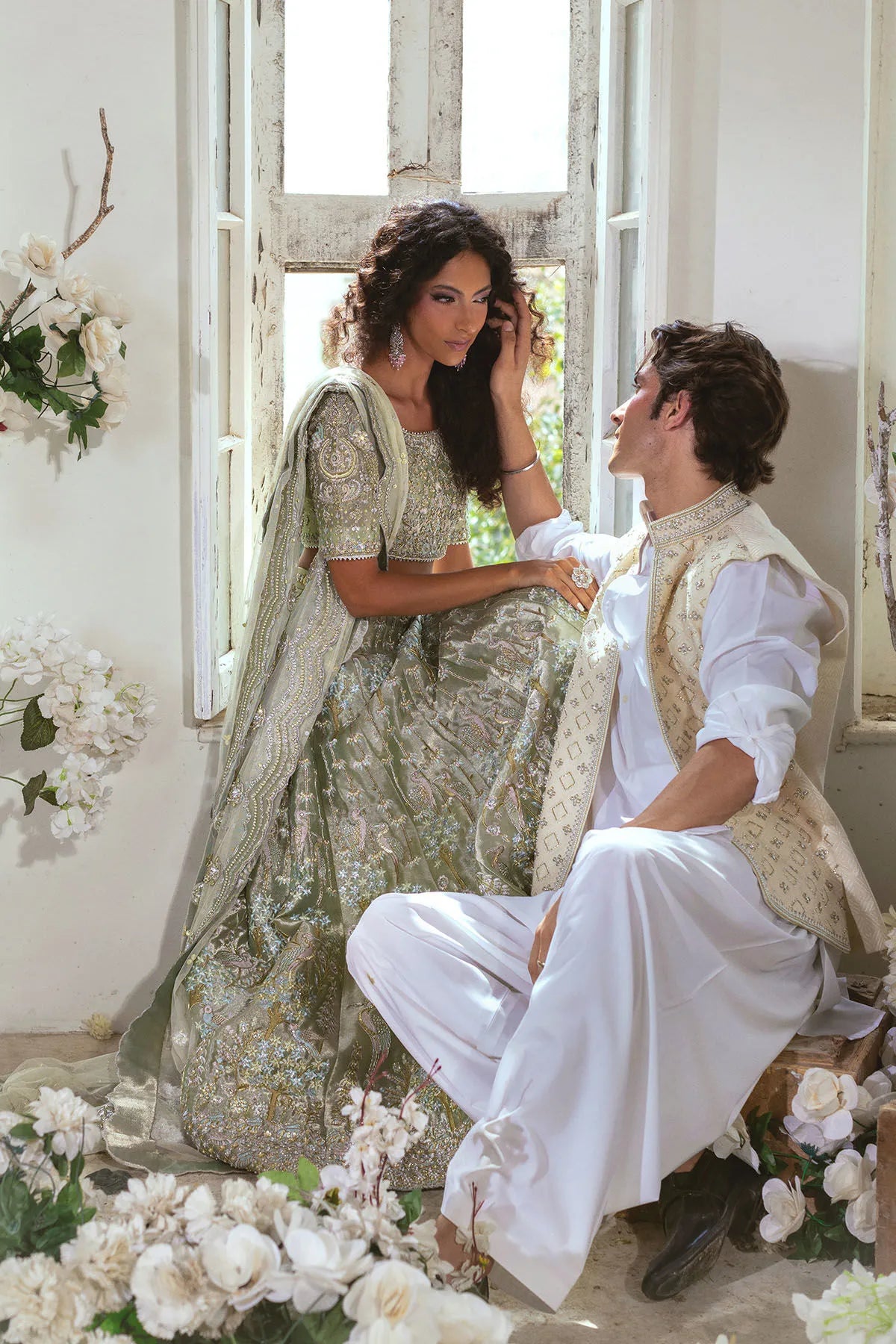 Radiate sophistication with Taliya by Annus Abrar, a mesmerizing ensemble that captures the essence of timeless glamour. This exquisite ice blue lamé choli is intricately adorned with zardozi and resham detailing, creating a luminous interplay of texture and artistry.