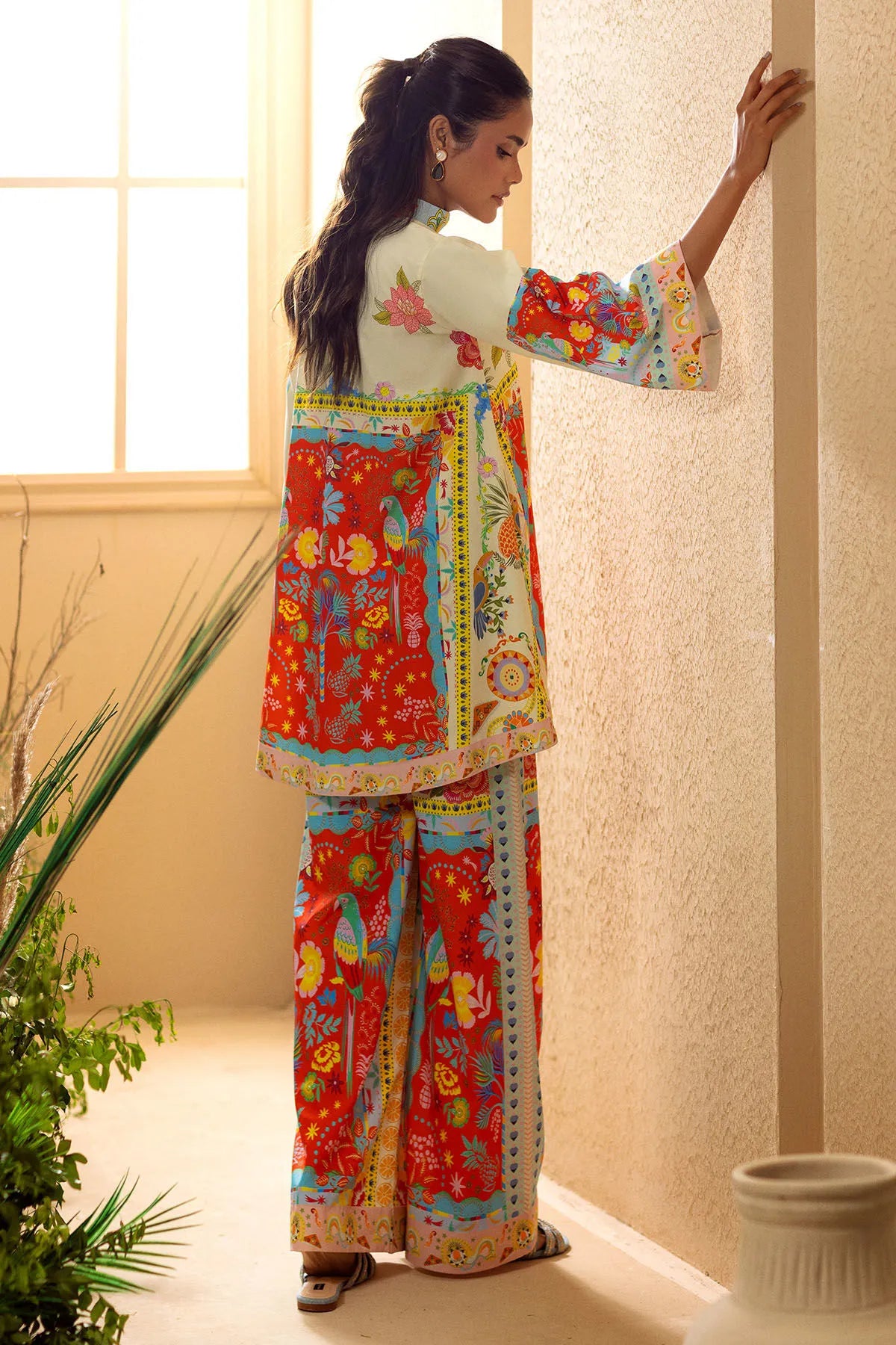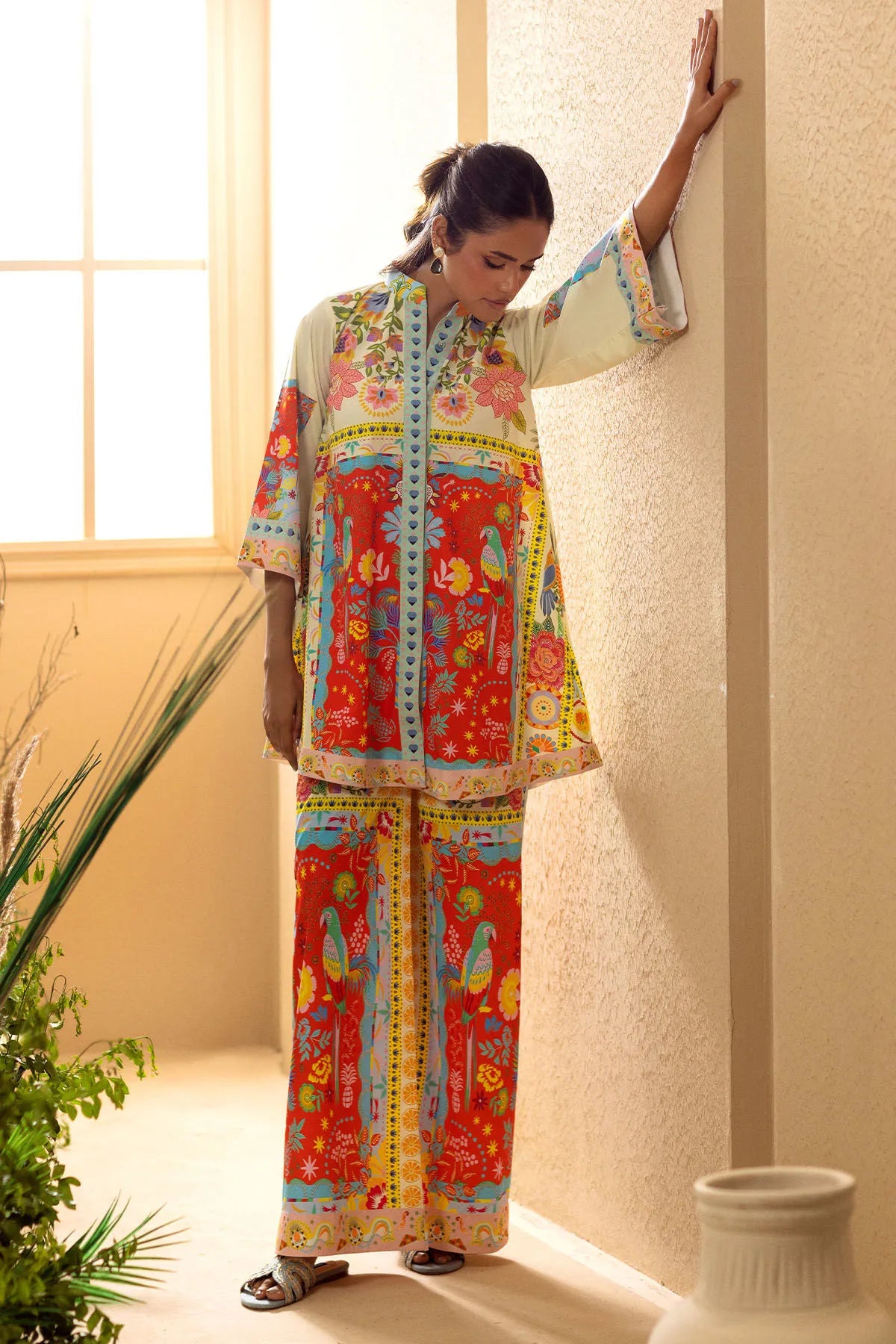 Effortlessly stylish, Yuri by Annus Abrar blends contemporary design with everyday comfort. Crafted from luxurious crepe silk, this co-ord set features delicate floral and fauna prints that add a playful yet refined charm. The knee-length shirt is designed with a relaxed, loose silhouette, offering ease of movement while maintaining a polished look.